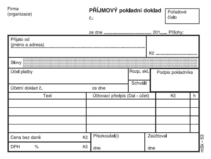 příjmový pokladní doklad s tabulkou