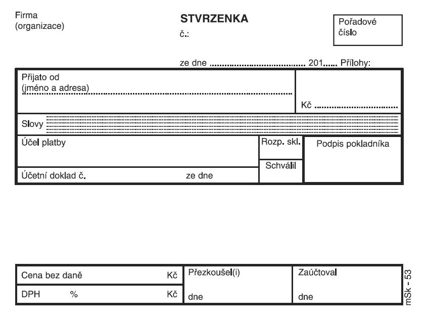 příjmový pokladní doklad, samopropis, nečíslovaný